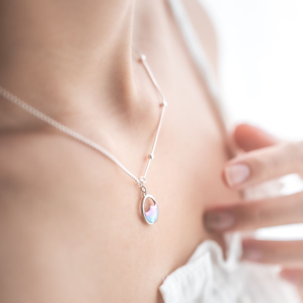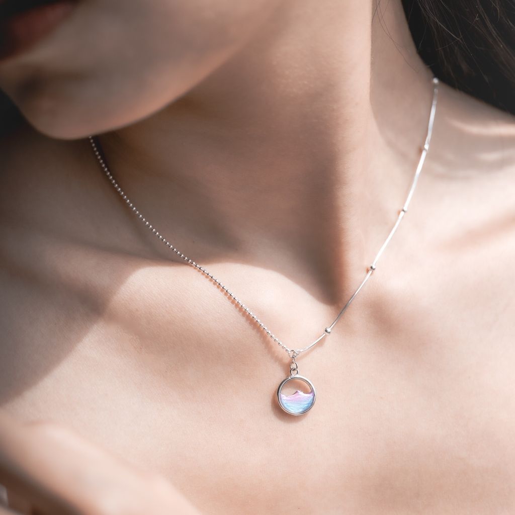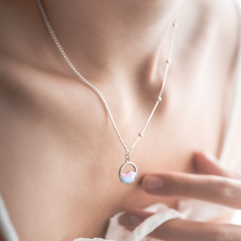 圓圈直徑/1.2cm 項鍊鏈子長度/40cm+5cm延長鏈 項鍊材質/925純銀 其他材質/樹脂、925純銀
